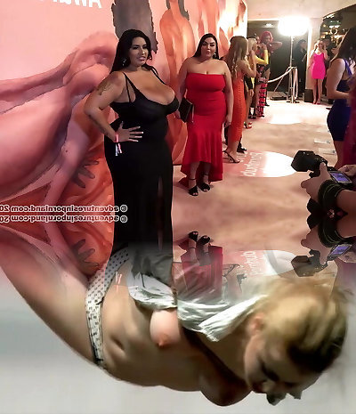 Mega busty dark-haired hooker Jasmine Black gargles big sausage of her man with passion