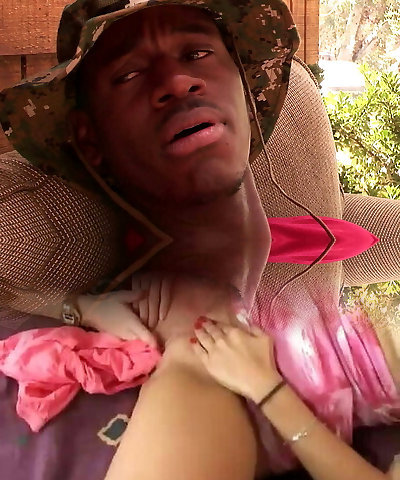 Black ebony slut with natural tits sucks the big ebony cock