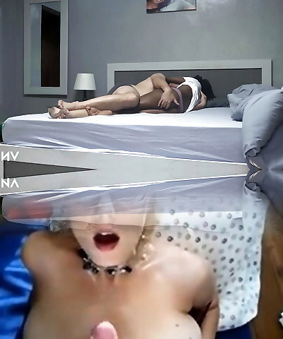 Salacious dark-hued babes face sits while the other rides a giant white cock in pov