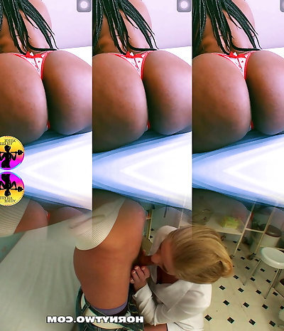 Randy boy gets his rigid tool sucked by sexy ebony nurse