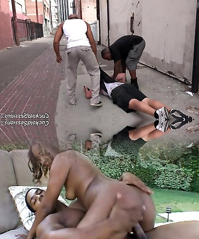 Couple of black stallions pleased the cuckold's wife with dual invasion for debts.