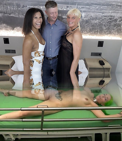 Huge cock fucks ebony and blonde teenage