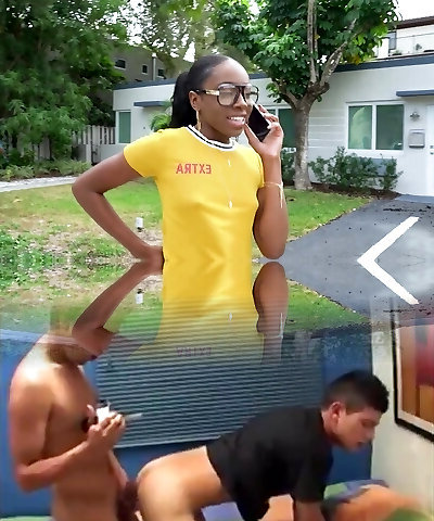 Sexy black girl in glasses gives head and gets pummeled by a milky guy