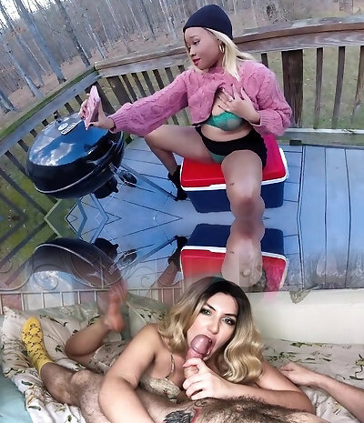 August Skye wearing white lingerie riding a dick in switch roles cowgirl