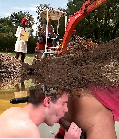 Construction worker pummels a breezy on the site and feeds her jizz