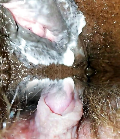 Ebony pumps out all over black dick after it crammed her pussy with sticky cum to the limit