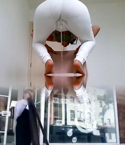 Pissing soaking yoga pants many positions