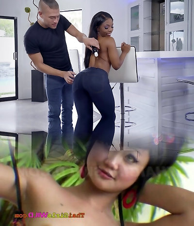 Hot as hell dark-hued Ada Vera filled with Bbc right in the kitchen