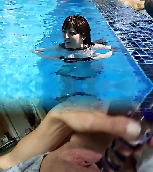 Fetching Asian lady Yumi Sugimoto spends her morning in the pool