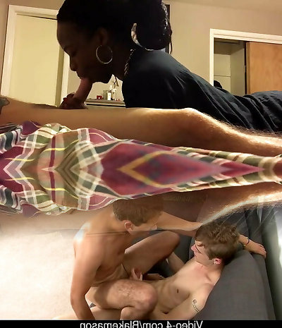 Ebony sweeties Barbie Stroker and Nikki Blows give head to an older guy