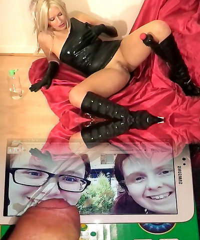 Blonde in black latex dress got creampie