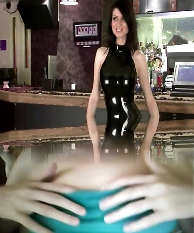 Stunning dark-haired in black latex dress