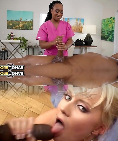 Dark-hued bodacious masseuse couldn't resist his bbc wile massaging it