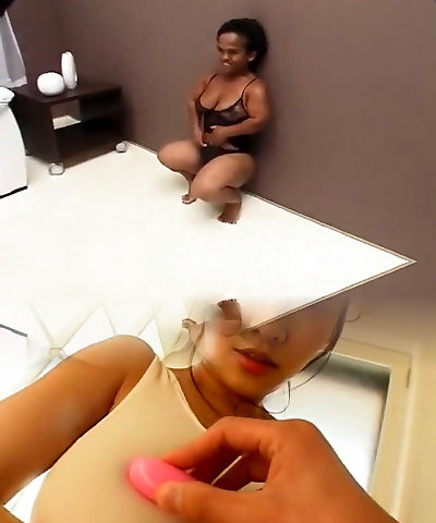 Big fat lesbo fucks a black midget