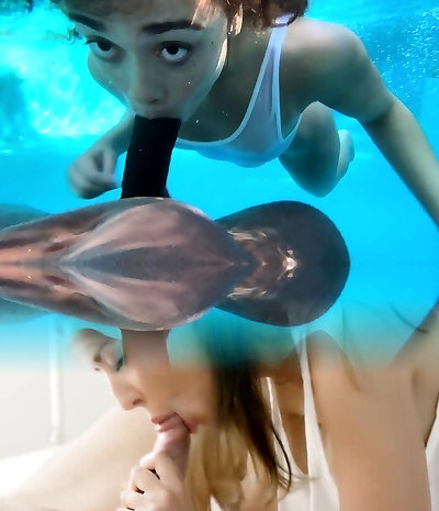 Funny big breasted amateur black head gives me Sucky-sucky in the swimming pool