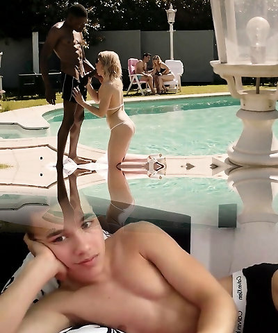 Jenna Starr having joy while sucking a ebony cock in the pool