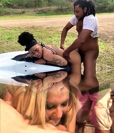 Black Bikini Stunner Public Multiracial Banging On A Boat And B