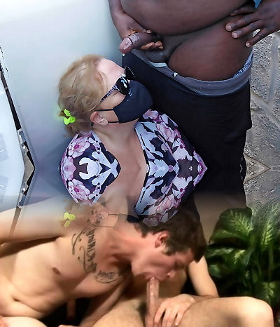 Ebony slut and white cocks at the glory holes